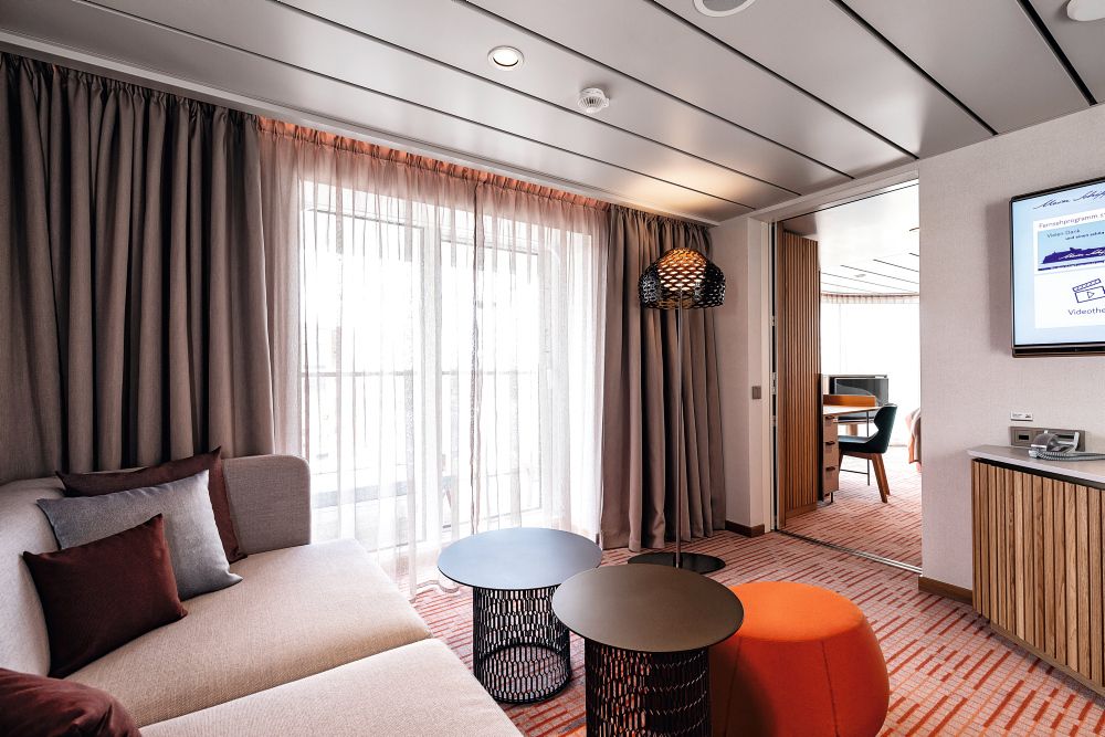 Lassen Sie sich von den Kabinen zum Wohlfühlen überraschen. Für Gäste mit eingeschränkter Mobilität stehen barrierefreie Kabinen zur Verfügung. Neu sind die Familienkabinen, ob mit oder ohne Balkon, ganz so wie Sie es sich wünschen. Verandakabinen mit einer Wohnfläche von 17 qm und Verandagröße von 30 qm bieten viel private Freiräume. Ein ebenso besonderes Wohlfühlerlebnis bieten die neuen vier exklusiven Suiten-Kategorien: Panorama Suite, Schöne Aussicht Suite, Horizont Suite und Übersee Suite. Viele Extraleistungen, wie z.B. ein separater Check-in, gewähren hohen Komfort in edlem Ambiente.