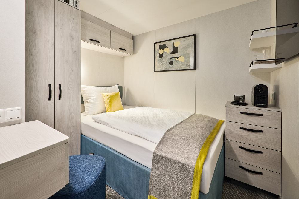 Wohlfühlen beginnt bei sich selbst. Gestalten Sie Ihre Kreuzfahrt ganz nach Ihren Wünschen und verwöhnen Sie sich – für einen geringen Aufpreis – mit einer der neuen Einzelkabinen an Bord der Mein Schiff 7. Das ansprechende Design gibt Ihnen in Ihrer Einzelkabine den Freiraum, den Sie benötigen, um sich so richtig zu entspannen und Ihre Wohlfühlauszeit mit allen Sinnen zu genießen.