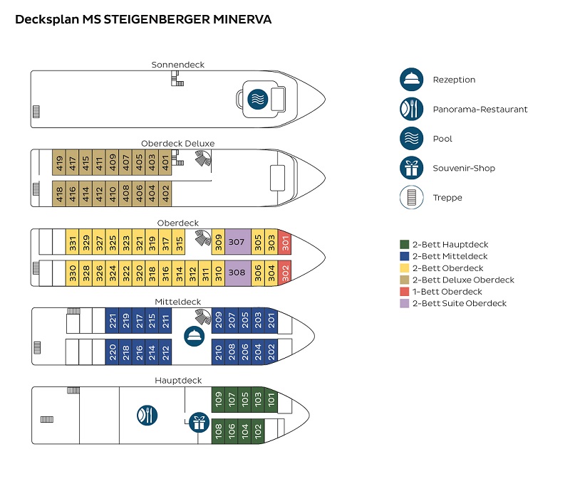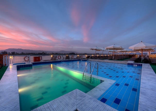 Von der sehr renommierten Hotelgruppe Steigenberger übernommen hebt sich dieses Schiff vor allem durch seinen hohen Komfort und dem ausgezeichnet Service von anderen Nilschiffen ab. Hier können Sie Ihren Urlaub wahrlich genießen. Die Kabinen sind allesamt Außenkabinen und verfügen über einen französischen Balkon. Des weiteren sind sie mit Dusch-Badewanne/ WC, Klimaanlage, Kühlschrank, TV, Telefon, Haartrockner und Safe ausgestattet. Erleben Sie sonnige Aussichten vom Sonnendeck mit Swimmingpool aus.